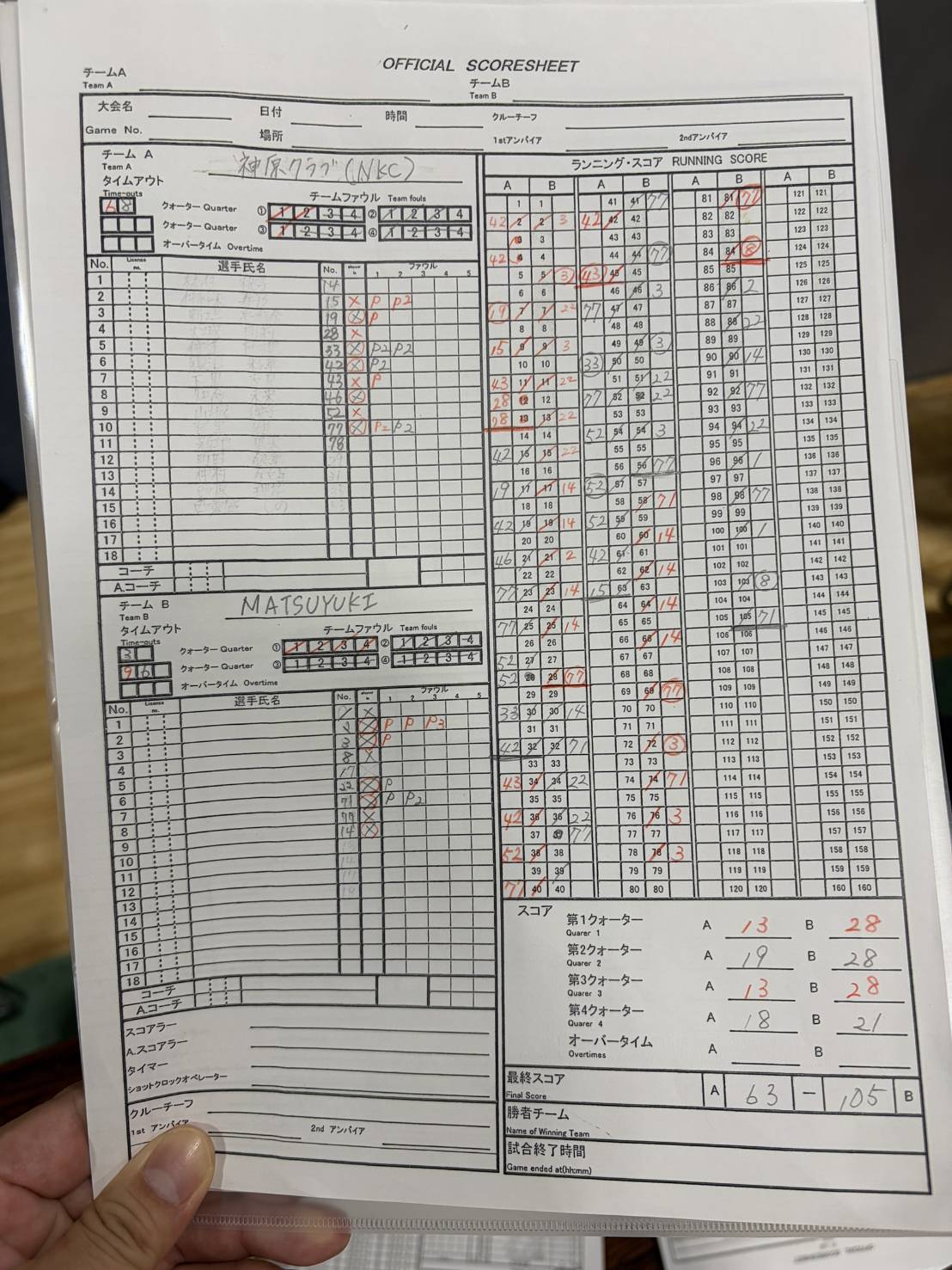 終始主導権を渡すことなく、最終スコア63-105で見事勝利を収めました。